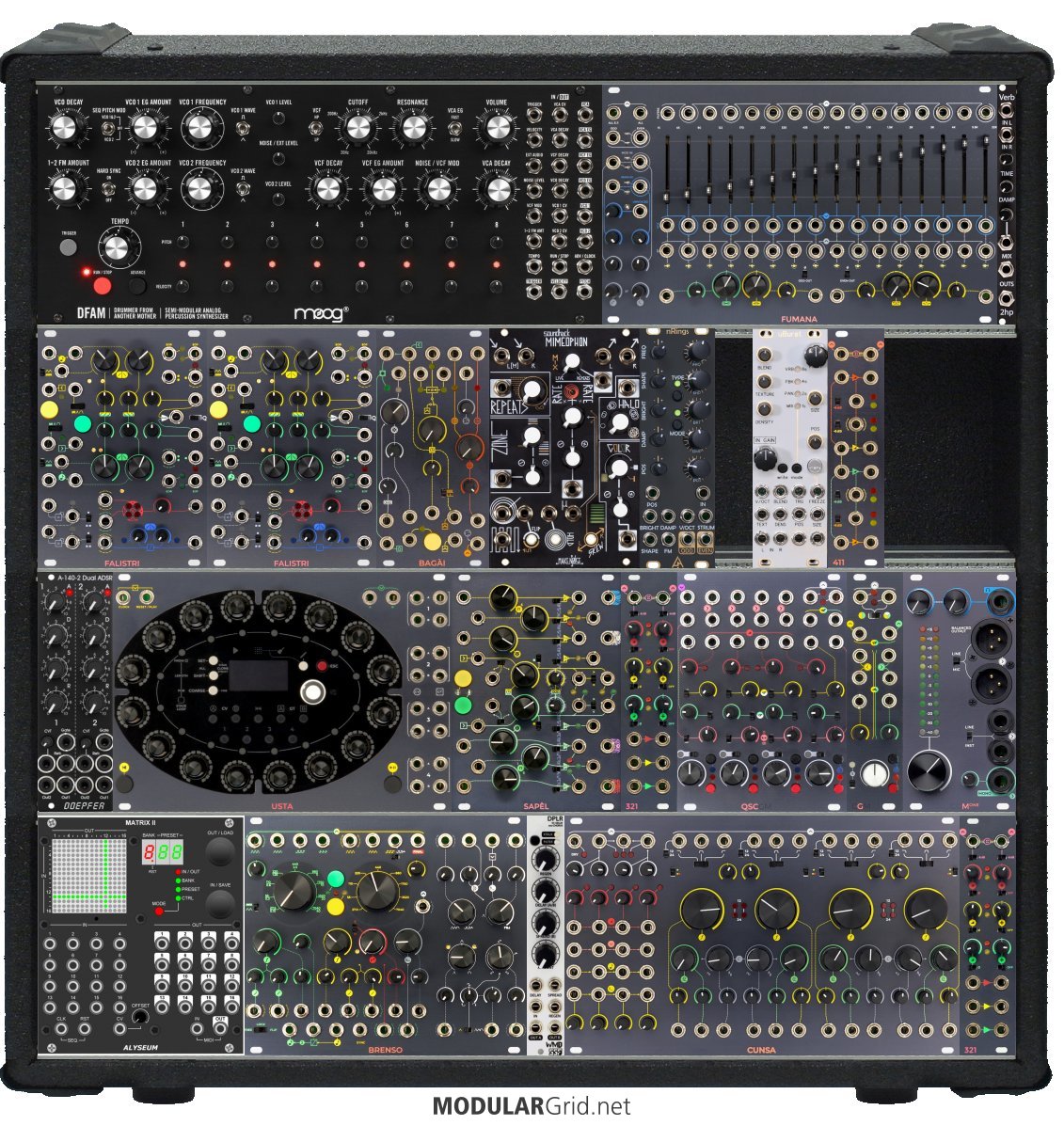 Power Consumption: 3489 mA +12V | 2210 mA -12V | 95 mA 5V | Depth: 45 mm | Price: $9,190 | Number of Modules: 23 | Data Sheet Achtung This Rack contains modules with incomplete power consumption specs: none