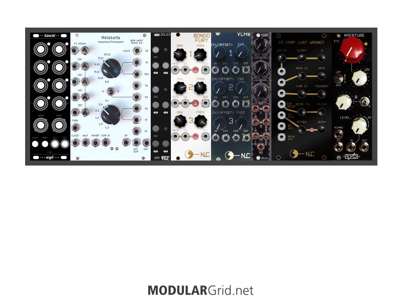 Achtung This Rack contains modules with incomplete power consumption specs: Is Carp Lust Wrong? (Black panel), Kimchi, Bongo Fury