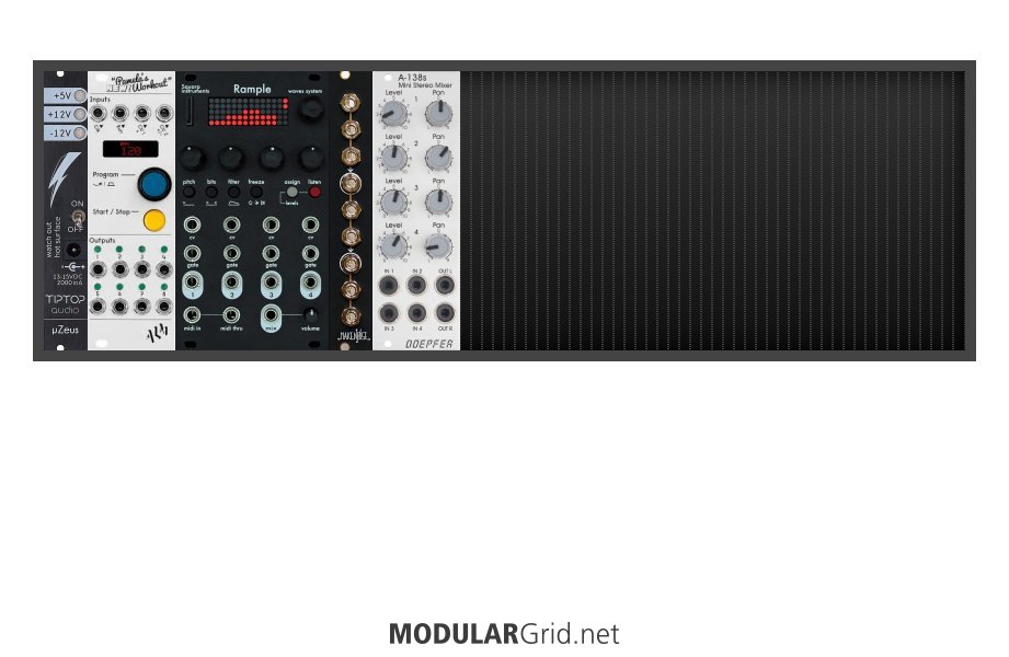 Power Consumption: 280 mA +12V | 51 mA -12V | 0 mA 5V | Depth: 36 mm | Price: $903 | Number of Modules: 5 | Data Sheet Achtung This Rack contains modules with incomplete power consumption specs: none