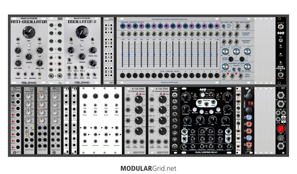 Power Consumption: 1001 mA +12V | 726 mA -12V | 0 mA 5V | Depth: 52 mm | Number of Modules: 31 | Data Sheet Achtung This Rack contains modules with incomplete power consumption specs: none