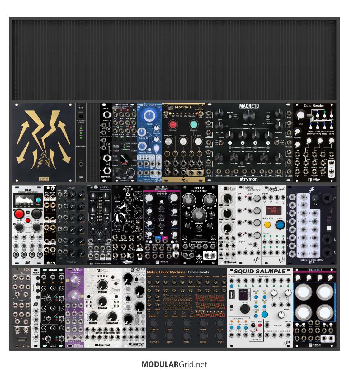 Power Consumption: 2717 mA +12V | 1165 mA -12V | 0 mA 5V | Depth: 50 mm | Price: $8,350 | Number of Modules: 28 | Data Sheet Achtung This Rack contains modules with incomplete power consumption specs: none