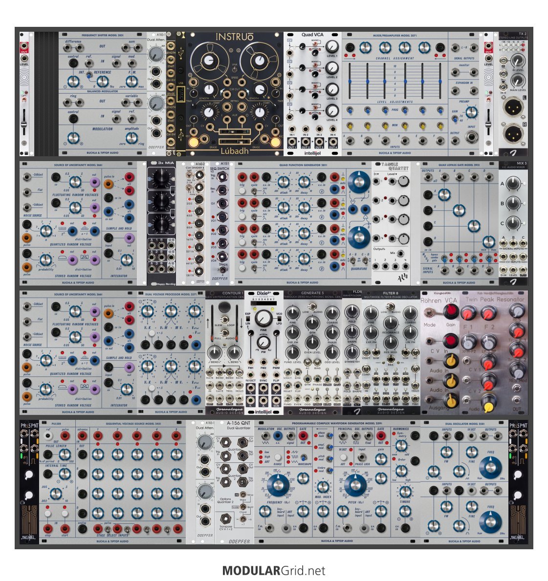 Power Consumption: 2184 mA +12V | 1460 mA -12V | 0 mA 5V | Depth: 55 mm | Price: $6,938 | Number of Modules: 43 | Data Sheet Achtung This Rack contains modules with incomplete power consumption specs: none