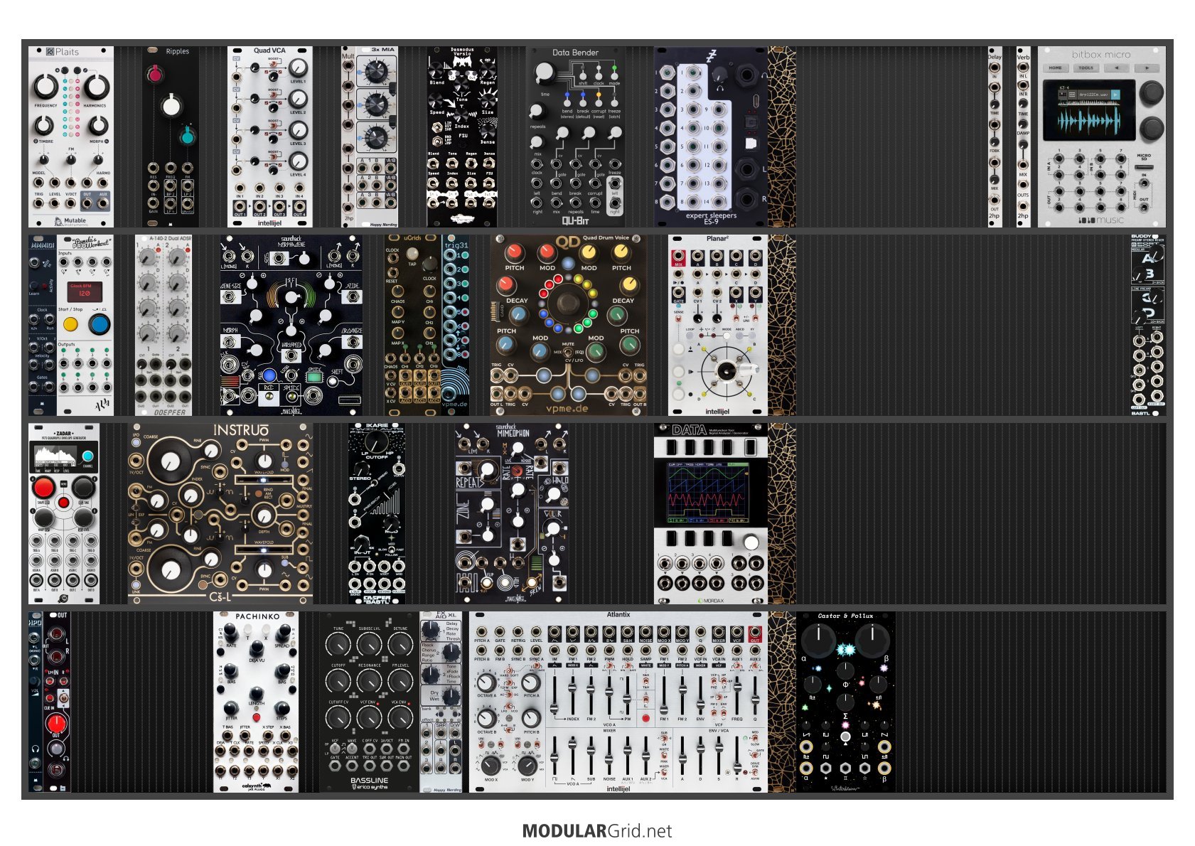 Power Consumption: 3191 mA +12V | 1253 mA -12V | 0 mA 5V | Depth: 50 mm | Price: $9,191 | Number of Modules: 36 | Data Sheet Achtung This Rack contains modules with incomplete power consumption specs: none