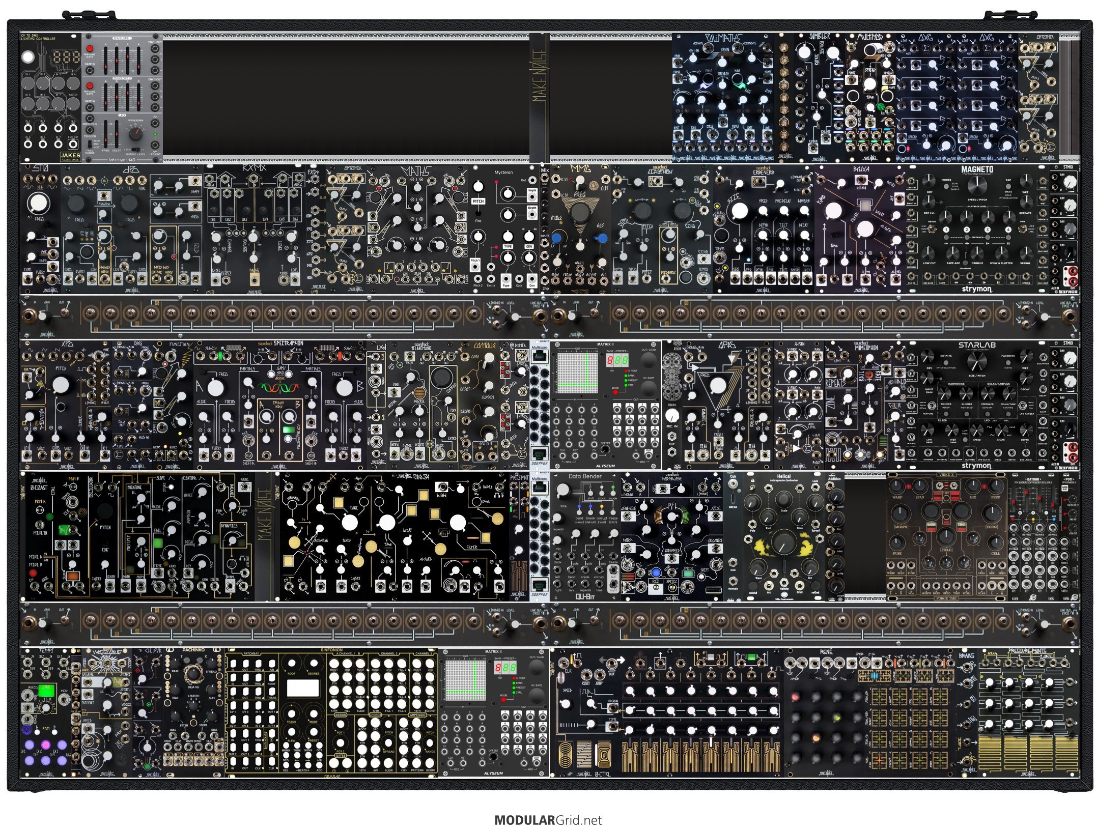 Power Consumption: 6016 mA +12V | 2304 mA -12V | 190 mA 5V | Depth: 48 mm | Number of Modules: 71 | Data Sheet Achtung This Rack contains modules with incomplete power consumption specs: none