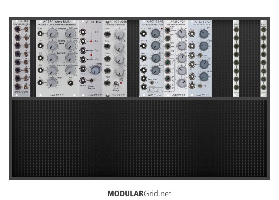 Power Consumption: 270 mA +12V | 170 mA -12V | 0 mA 5V | Depth: 65 mm | Price: $1,172 | Number of Modules: 11 | Data Sheet Achtung This Rack contains modules with incomplete power consumption specs: none
