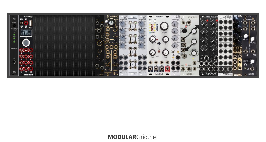 Power Consumption: 480 mA +12V | 331 mA -12V | 120 mA 5V | Depth: 45 mm | Price: $2,126 | Number of Modules: 14 | Data Sheet Achtung This Rack contains modules with incomplete power consumption specs: none