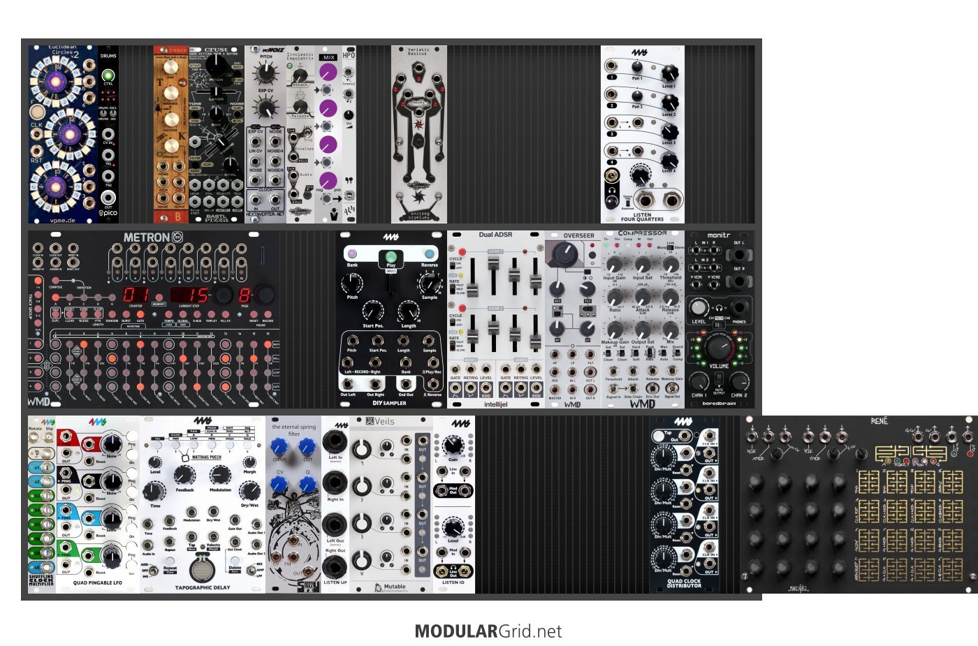 Power Consumption: 1787 mA +12V | 769 mA -12V | 111 mA 5V | Depth: 40 mm | Price: $6,073 | Number of Modules: 25 | Data Sheet Achtung This Rack contains modules with incomplete power consumption specs: none