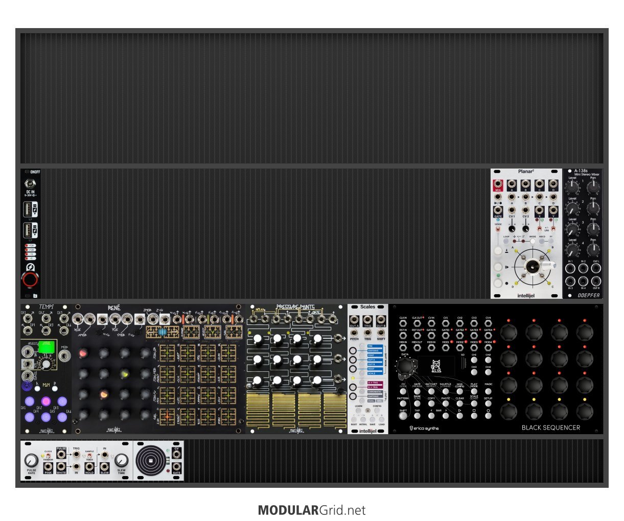 Power Consumption: 633 mA +12V | 106 mA -12V | 0 mA 5V | Depth: 50 mm | Price: $2,749 | Number of Modules: 10 | Data Sheet Achtung This Rack contains modules with incomplete power consumption specs: none