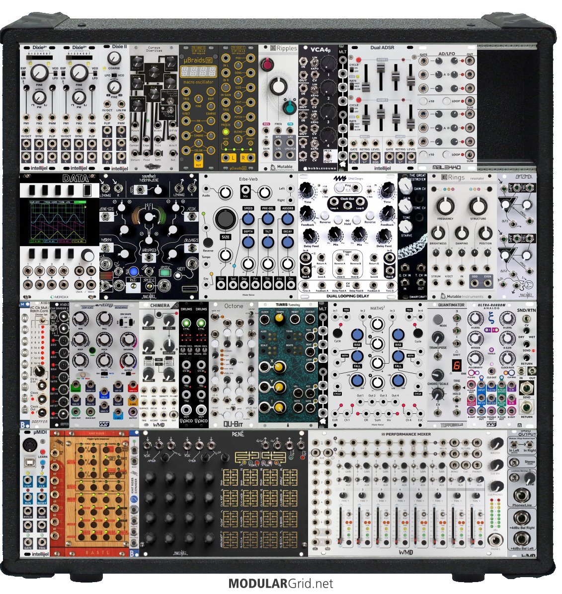 Power Consumption: 3053 mA +12V | 1348 mA -12V | 90 mA 5V | Depth: 45 mm | Price: $9,905 | Number of Modules: 38 | Data Sheet Achtung This Rack contains modules with incomplete power consumption specs: none