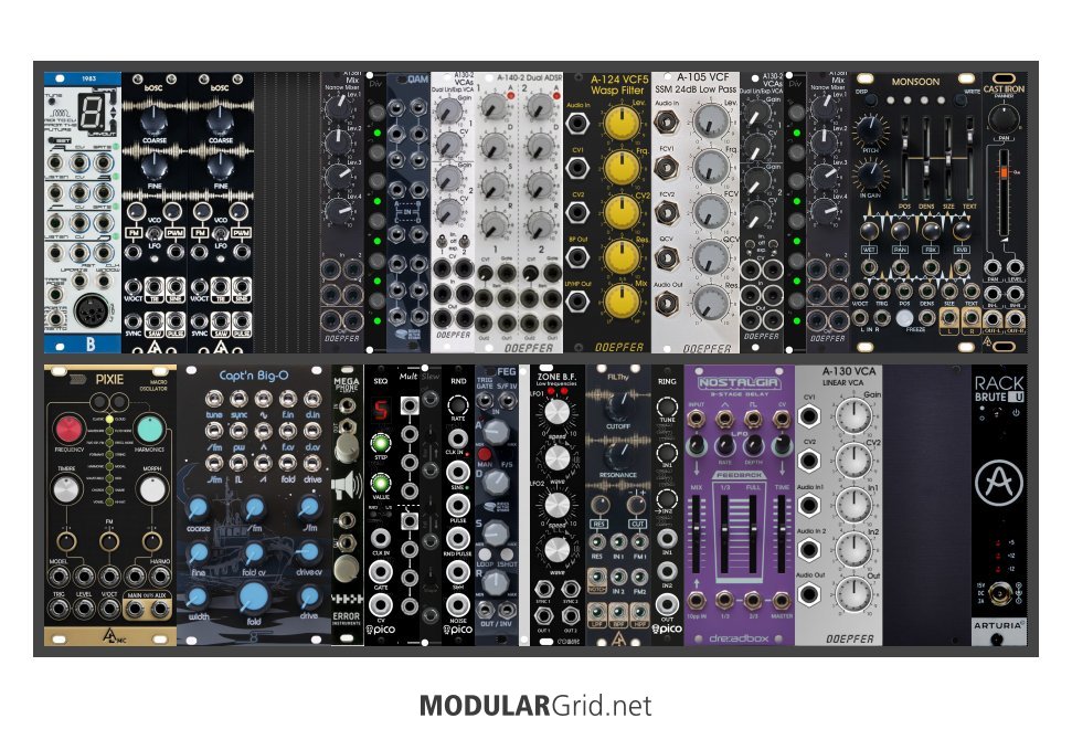 Power Consumption: 1175 mA +12V | 550 mA -12V | 0 mA 5V | Depth: 80 mm | Price: $3,348 | Number of Modules: 31 | Data Sheet Achtung This Rack contains modules with incomplete power consumption specs: none