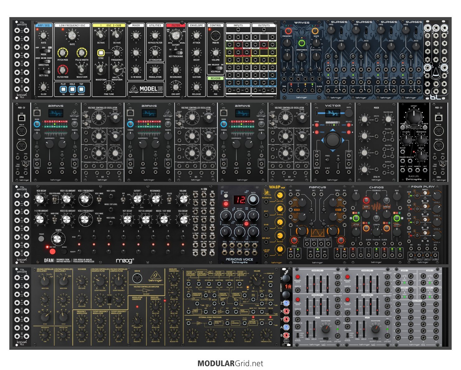Power Consumption: 3240 mA +12V | 576 mA -12V | 0 mA 5V | Depth: 56 mm | Price: $2,266 | Number of Modules: 25 | Data Sheet Achtung This Rack contains modules with incomplete power consumption specs: none