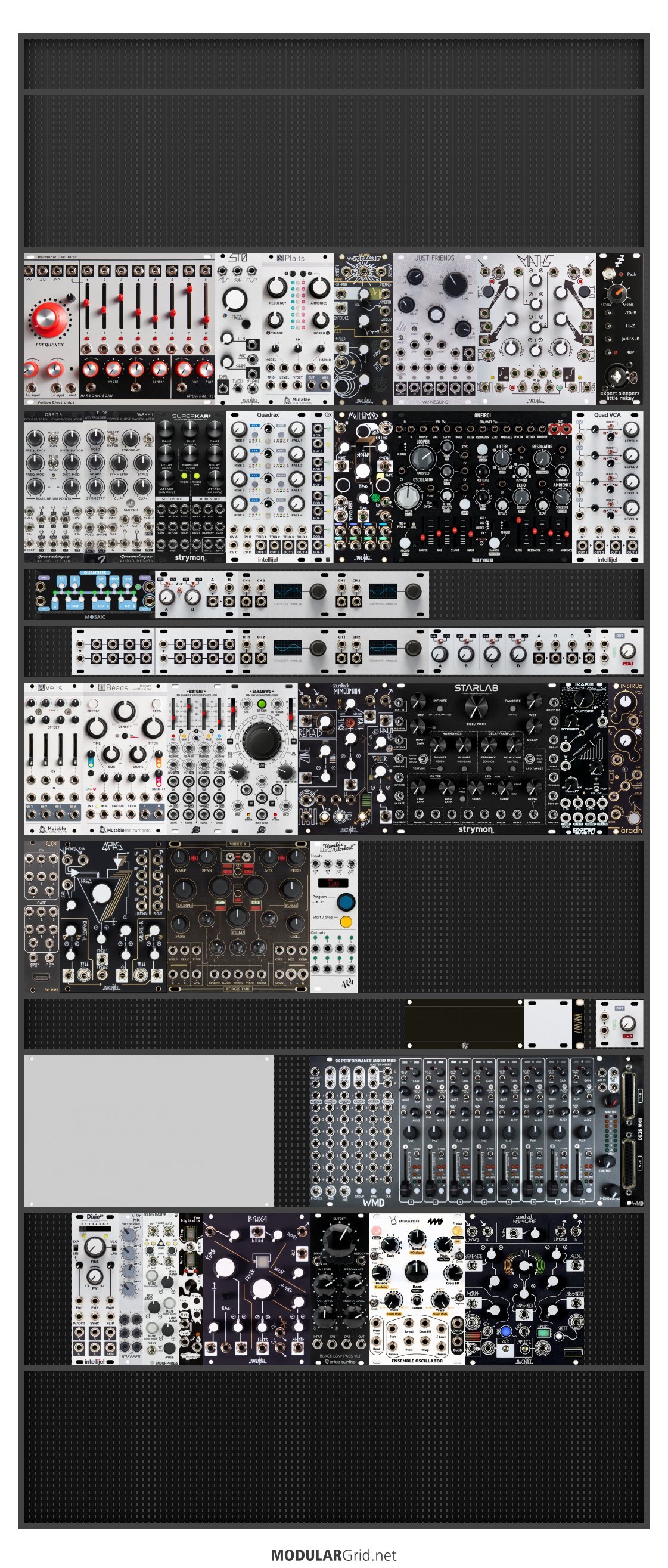 Power Consumption: 3999 mA +12V | 2498 mA -12V | 0 mA 5V | Depth: 48 mm | Price: $14,178 | Number of Modules: 52 | Data Sheet Achtung This Rack contains modules with incomplete power consumption specs: none