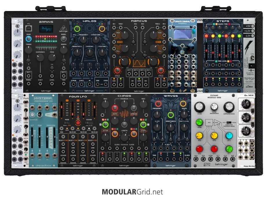 Power Consumption: 1063 mA +12V | 435 mA -12V | 0 mA 5V | Depth: 65 mm | Price: $2,012 | Number of Modules: 15 | Data Sheet Achtung This Rack contains modules with incomplete power consumption specs: none