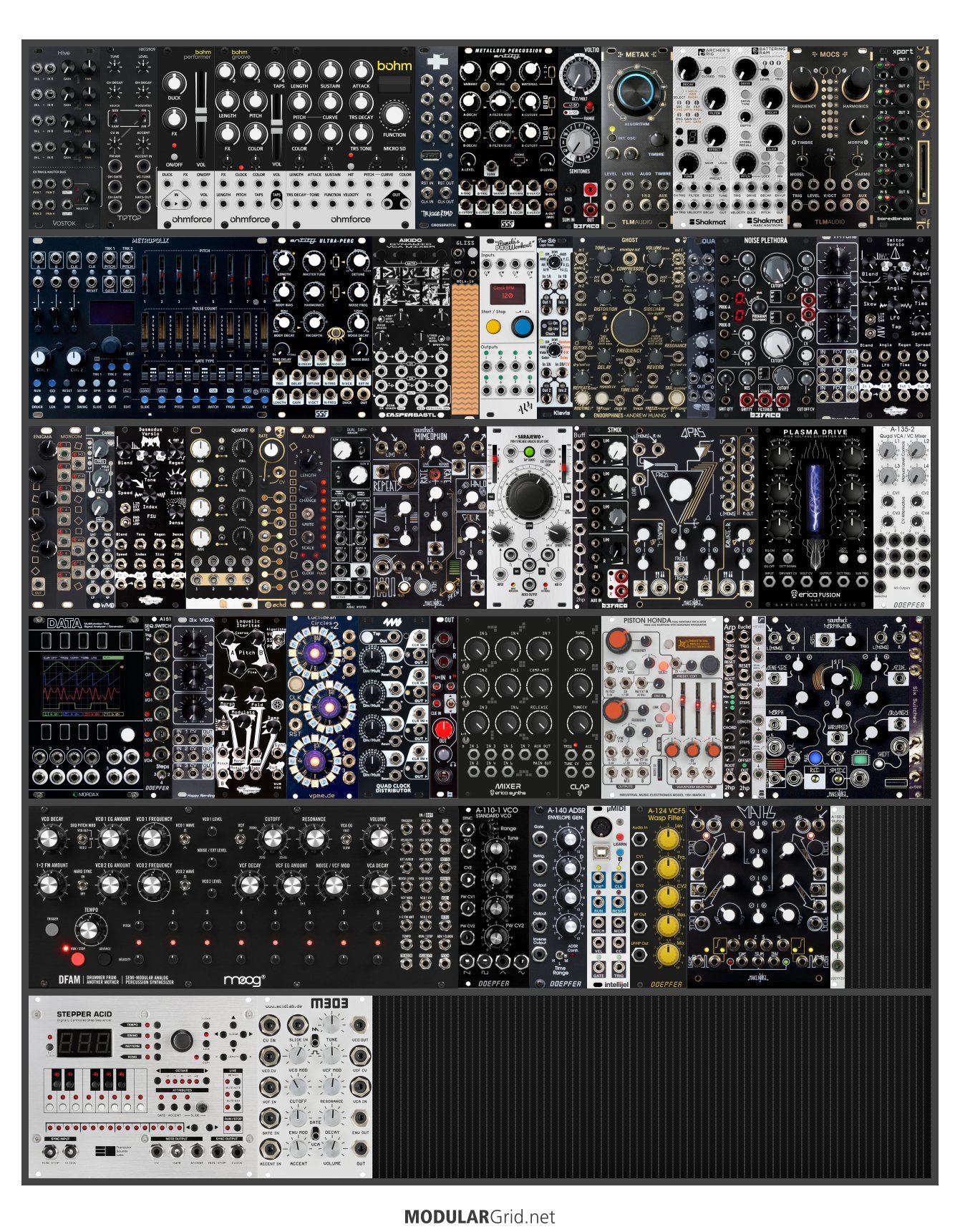 Power Consumption: 4536 mA +12V | 2239 mA -12V | 201 mA 5V | Depth: 51 mm | Price: $15,752 | Number of Modules: 64 | Data Sheet Achtung This Rack contains modules with incomplete power consumption specs: none