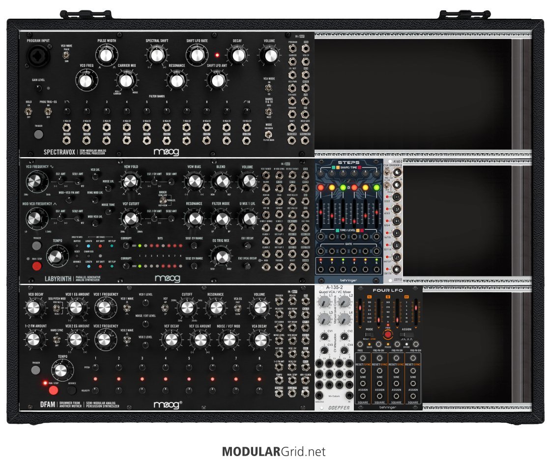 Power Consumption: 1255 mA +12V | 139 mA -12V | 0 mA 5V | Depth: 47 mm | Price: $2,331 | Number of Modules: 7 | Data Sheet Achtung This Rack contains modules with incomplete power consumption specs: none