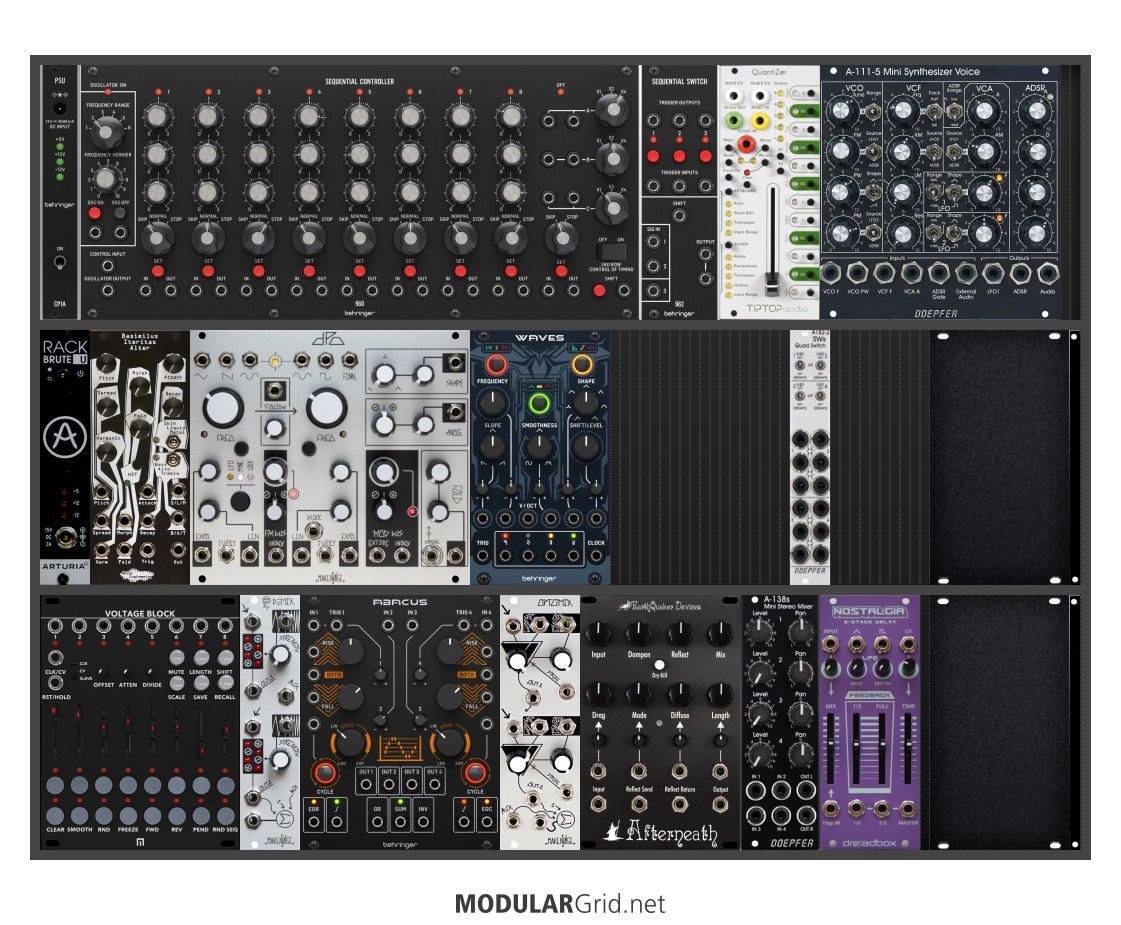Power Consumption: 937 mA +12V | 375 mA -12V | 90 mA 5V | Depth: 80 mm | Price: $3,823 | Number of Modules: 22 | Data Sheet Achtung This Rack contains modules with incomplete power consumption specs: none