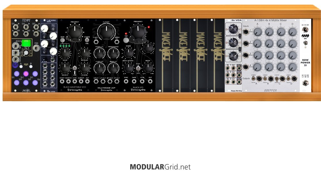 Power Consumption: 382 mA +12V | 209 mA -12V | 0 mA 5V | Depth: 35 mm | Price: $1,769 | Number of Modules: 9 | Data Sheet Achtung This Rack contains modules with incomplete power consumption specs: none