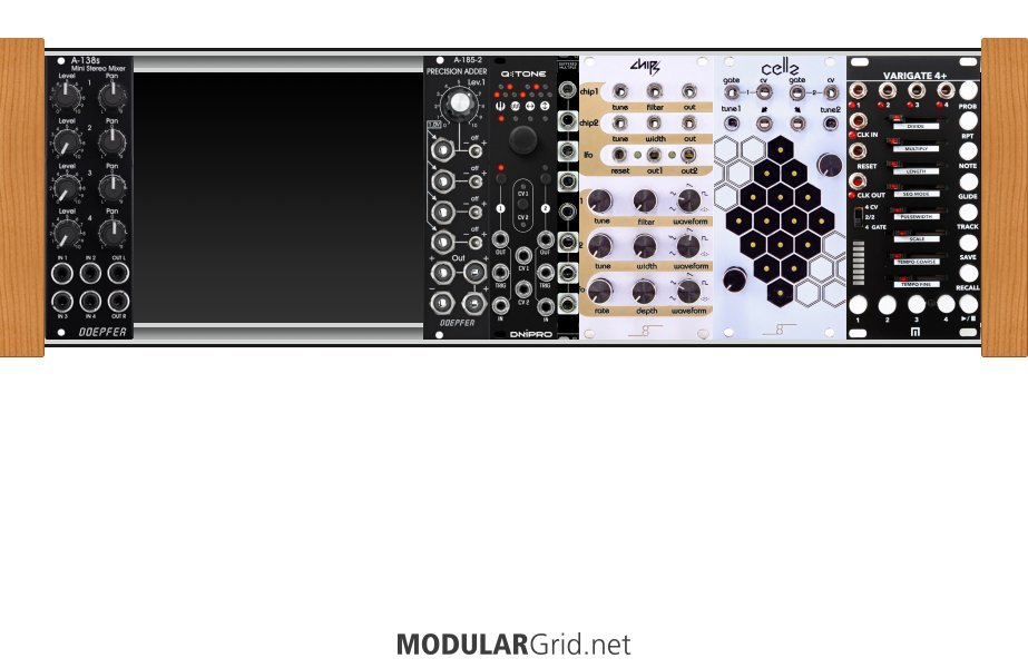 Power Consumption: 203 mA +12V | 86 mA -12V | 62 mA 5V | Depth: 45 mm | Price: $937 | Number of Modules: 7 | Data Sheet Achtung This Rack contains modules with incomplete power consumption specs: none