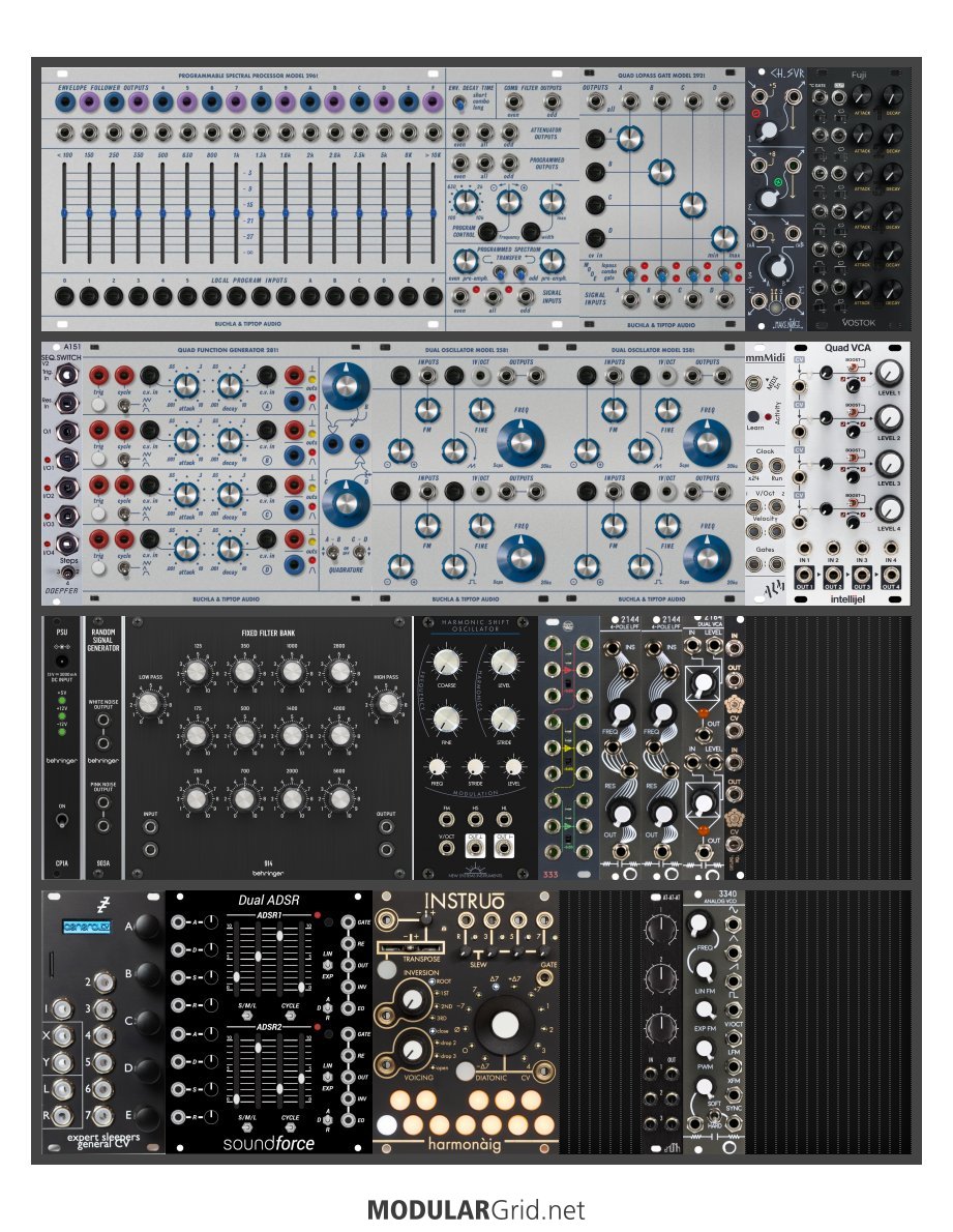 Power Consumption: 1553 mA +12V | 1028 mA -12V | 0 mA 5V | Depth: 52 mm | Price: $4,523 | Number of Modules: 24 | Data Sheet Achtung This Rack contains modules with incomplete power consumption specs: none