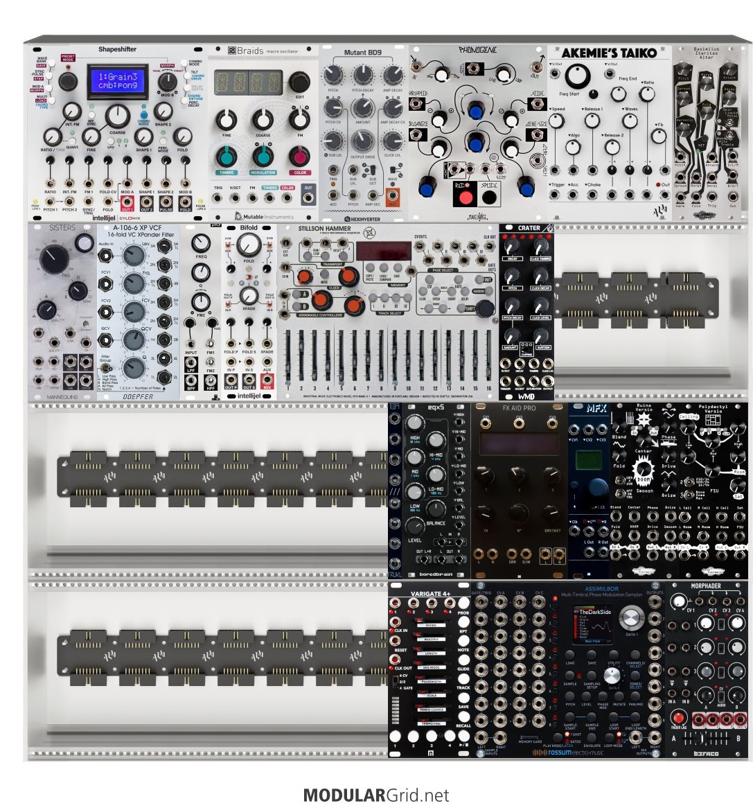 Power Consumption: 1897 mA +12V | 839 mA -12V | 90 mA 5V | Depth: 50 mm | Price: $6,939 | Number of Modules: 21 | Data Sheet Achtung This Rack contains modules with incomplete power consumption specs: none
