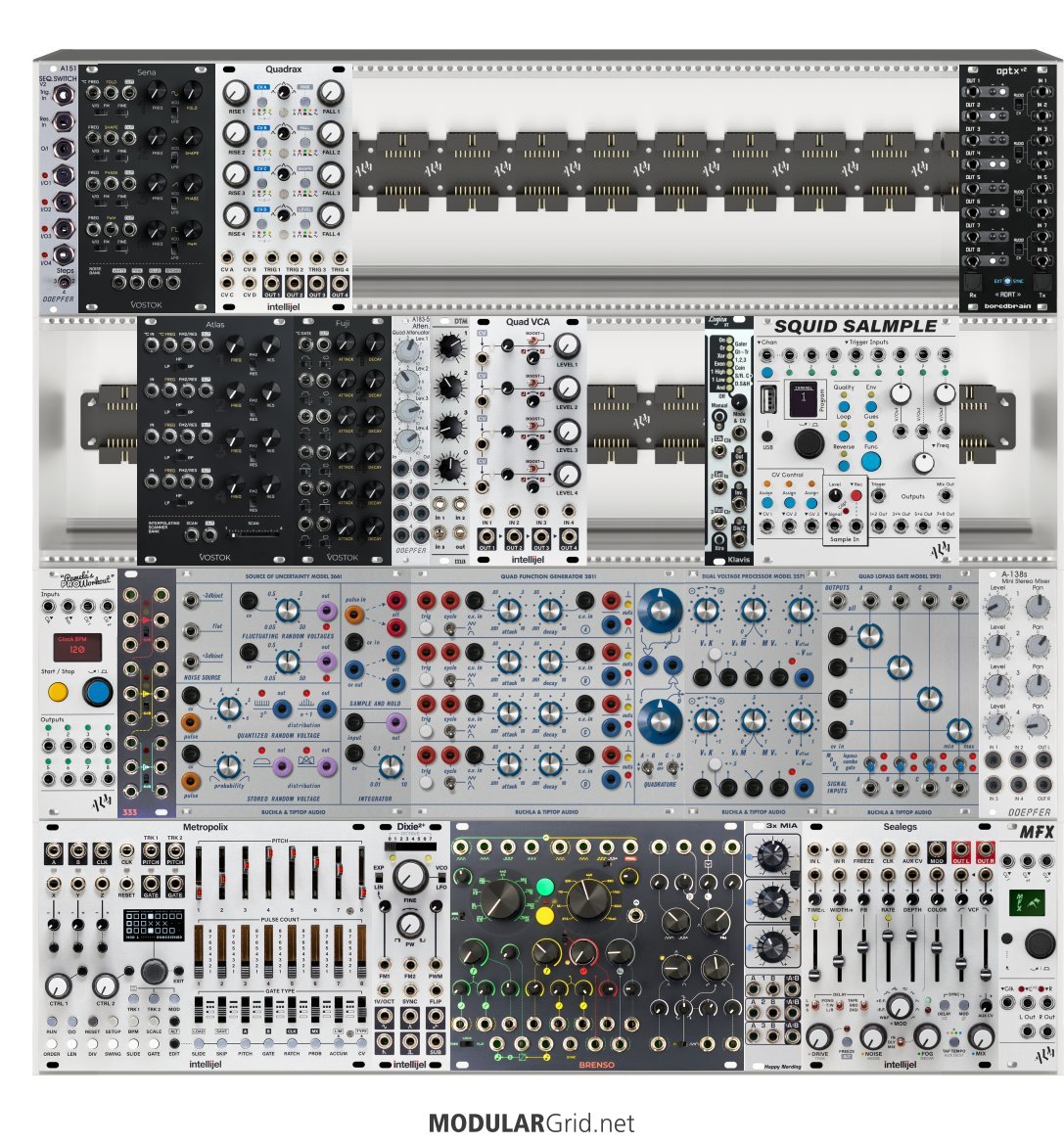Power Consumption: 2328 mA +12V | 1175 mA -12V | 0 mA 5V | Depth: 45 mm | Price: $7,109 | Number of Modules: 25 | Data Sheet Achtung This Rack contains modules with incomplete power consumption specs: none