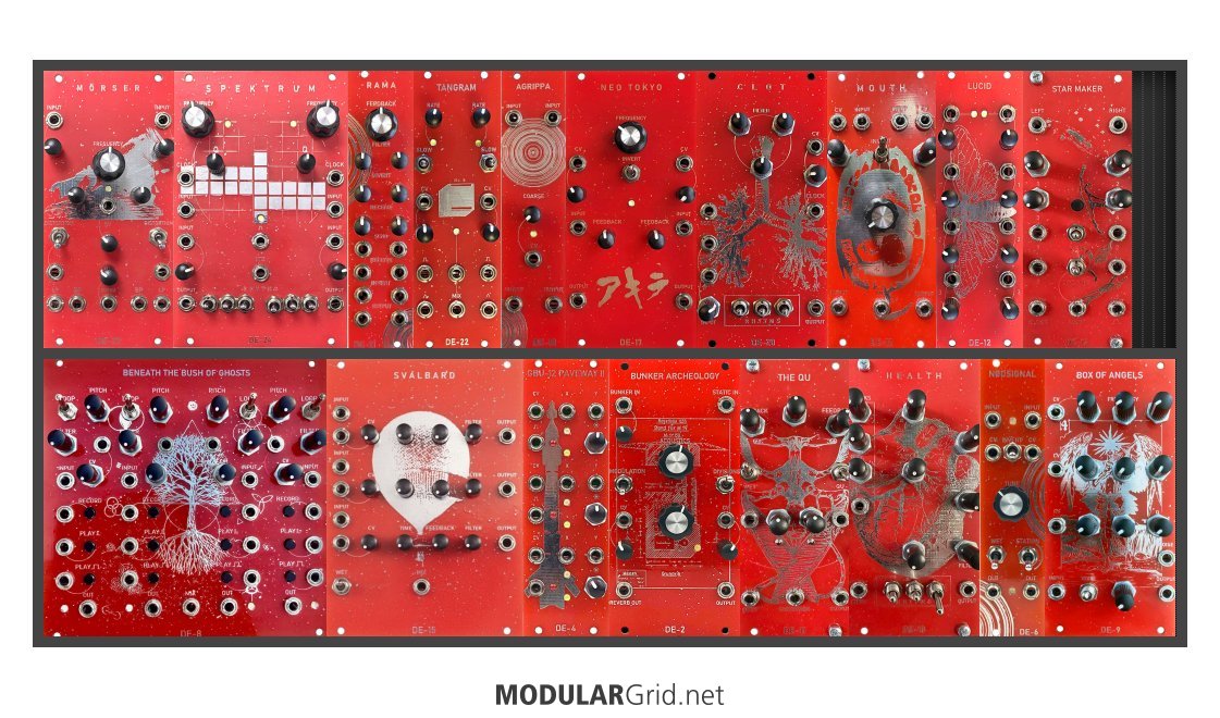 Achtung This Rack contains modules with incomplete power consumption specs: DE-27 Mörser, DE-24 Spektrum, DE-22 Tangram, DE-12 Lucid, DE-13 Star Maker, DE-8 – BENEATH THE BUSH OF GHOSTS