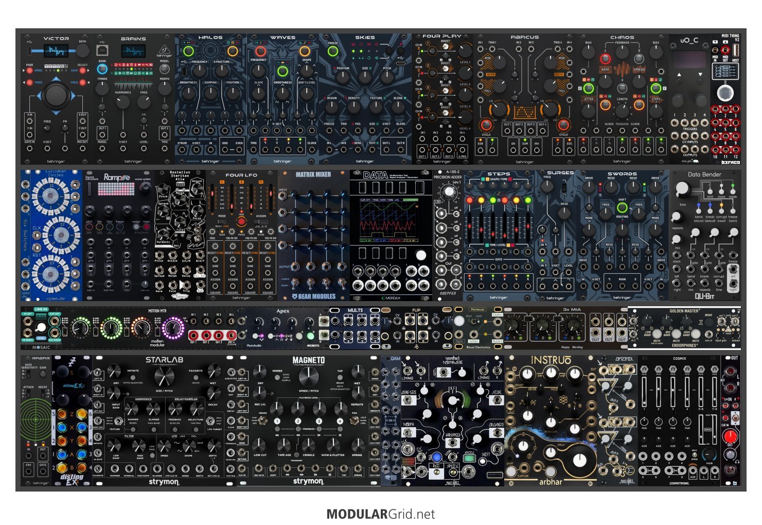 Power Consumption: 3566 mA +12V | 1581 mA -12V | 190 mA 5V | Depth: 52 mm | Price: $8,563 | Number of Modules: 39 | Data Sheet Achtung This Rack contains modules with incomplete power consumption specs: none