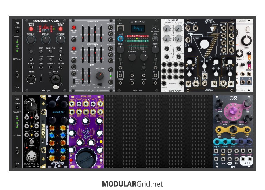 Power Consumption: 1412 mA +12V | 445 mA -12V | 0 mA 5V | Depth: 53 mm | Price: $3,289 | Number of Modules: 16 | Data Sheet Achtung This Rack contains modules with incomplete power consumption specs: none