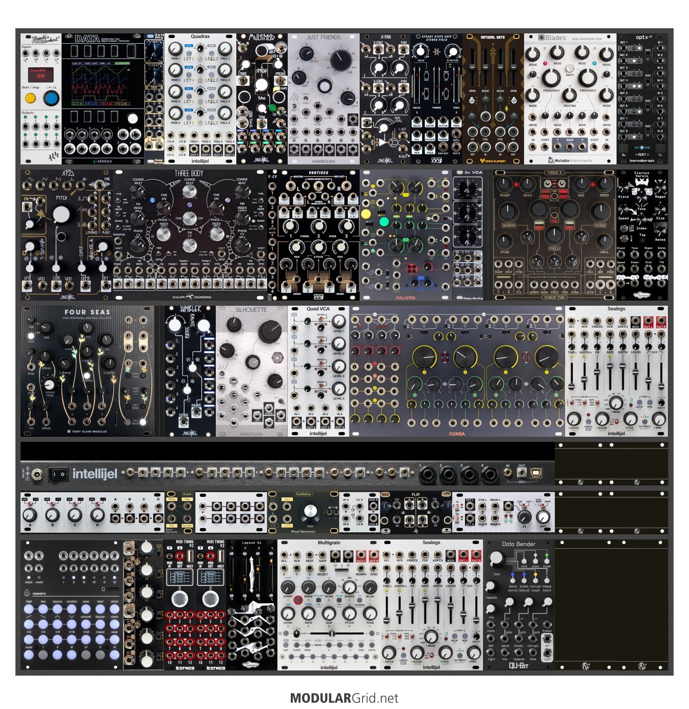 Achtung This Rack contains modules with incomplete power consumption specs: 4U x 104HP Palette Case Top Row STEALTH / BLACK (0.5U)