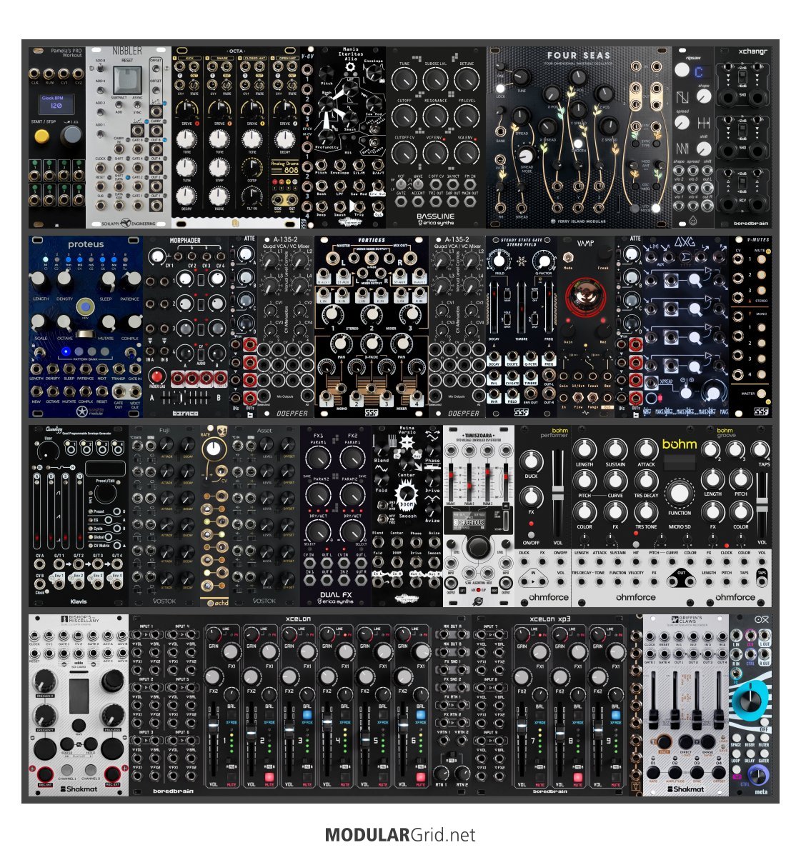 Power Consumption: 3059 mA +12V | 1840 mA -12V | 44 mA 5V | Depth: 45 mm | Price: $10,658 | Number of Modules: 36 | Data Sheet Achtung This Rack contains modules with incomplete power consumption specs: none