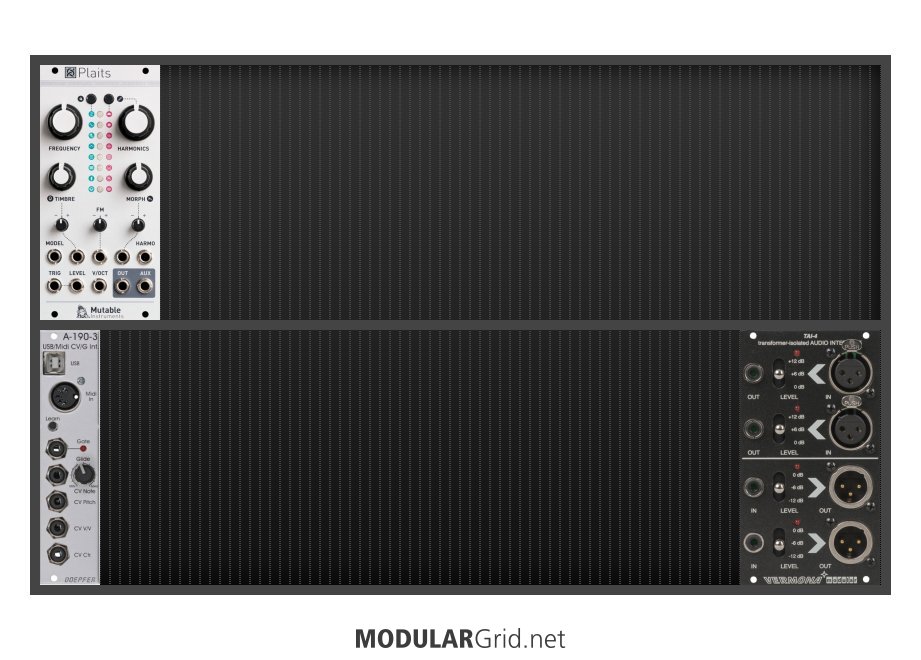 Power Consumption: 130 mA +12V | 35 mA -12V | 0 mA 5V | Depth: 55 mm | Price: $799 | Number of Modules: 3 | Data Sheet Achtung This Rack contains modules with incomplete power consumption specs: none