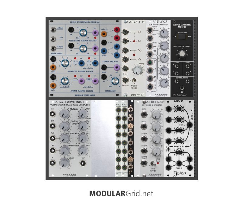 Power Consumption: 344 mA +12V | 259 mA -12V | 0 mA 5V | Depth: 65 mm | Price: $1,094 | Number of Modules: 12 | Data Sheet Achtung This Rack contains modules with incomplete power consumption specs: none