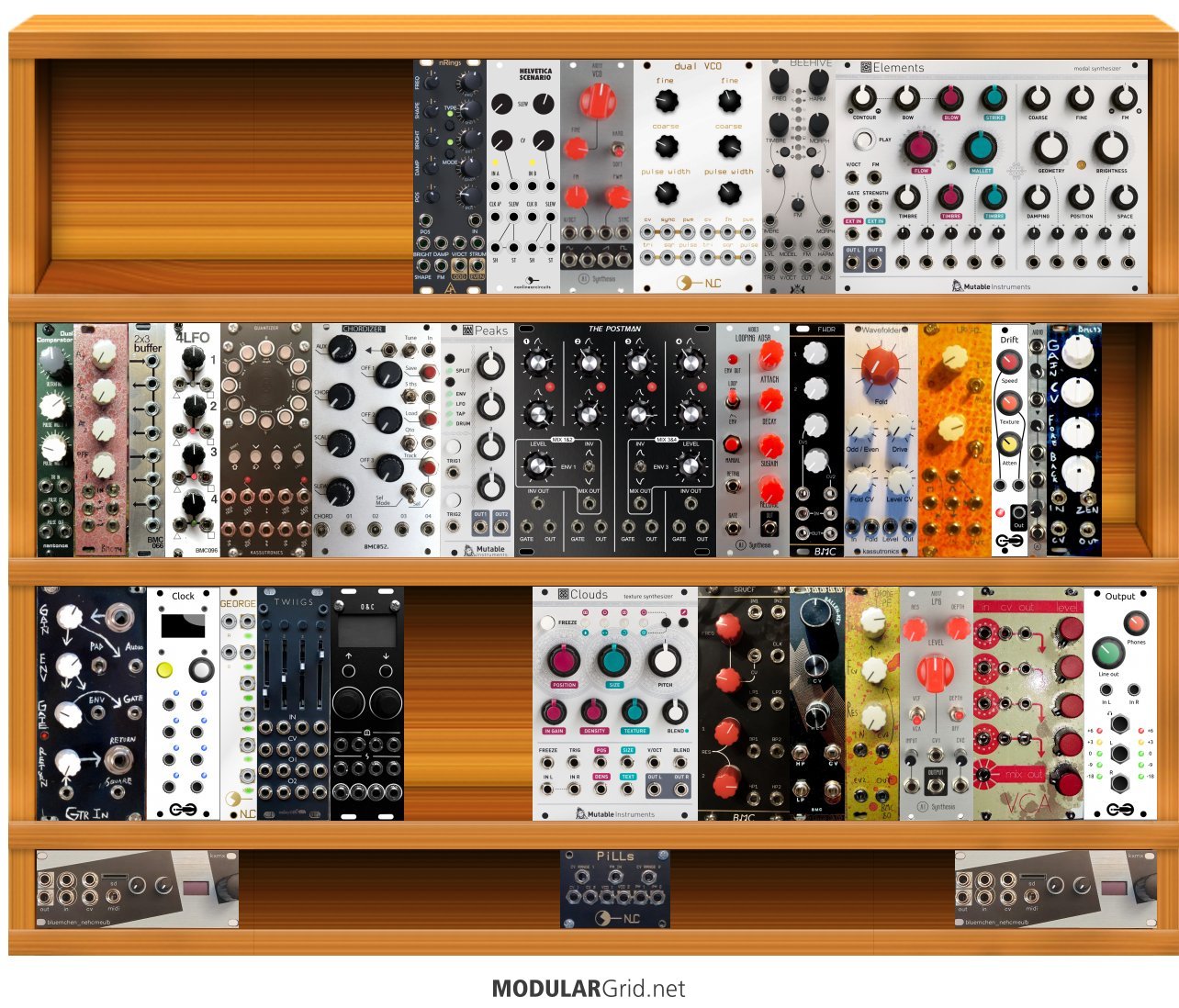Achtung This Rack contains modules with incomplete power consumption specs: George, Guitar Input, BMC034 Switched Resistor VCF, Chordizer, BMC074 Attenuate Offset Invert, BMC080 Diode Low Pass VCF, 2LFO SH, The Postman (Black Panel), Dual VCO
