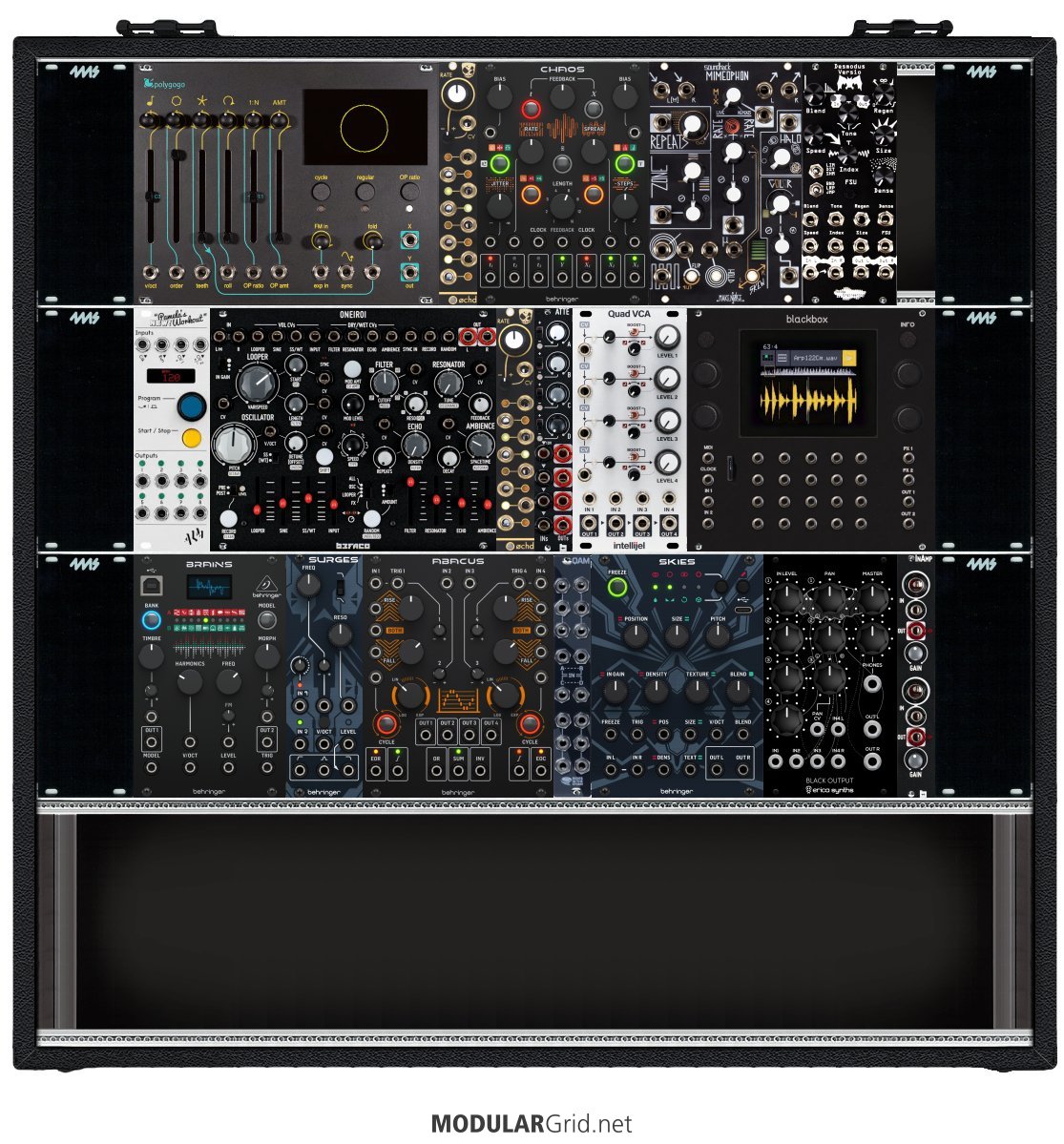 Power Consumption: 1743 mA +12V | 659 mA -12V | 0 mA 5V | Depth: 42 mm | Price: $4,425 | Number of Modules: 30 | Data Sheet Achtung This Rack contains modules with incomplete power consumption specs: none