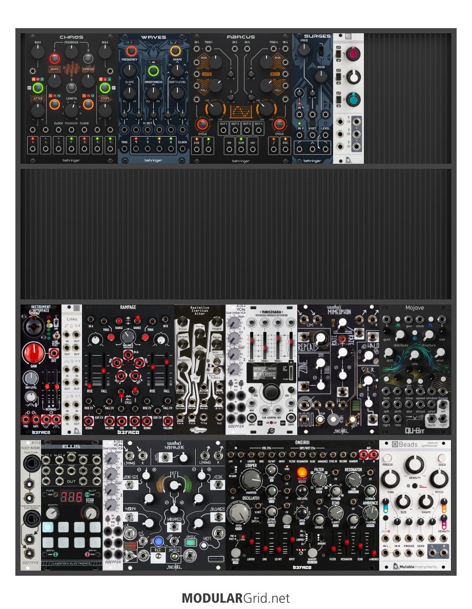 Power Consumption: 1617 mA +12V | 589 mA -12V | 90 mA 5V | Depth: 45 mm | Price: $4,671 | Number of Modules: 19 | Data Sheet Achtung This Rack contains modules with incomplete power consumption specs: none
