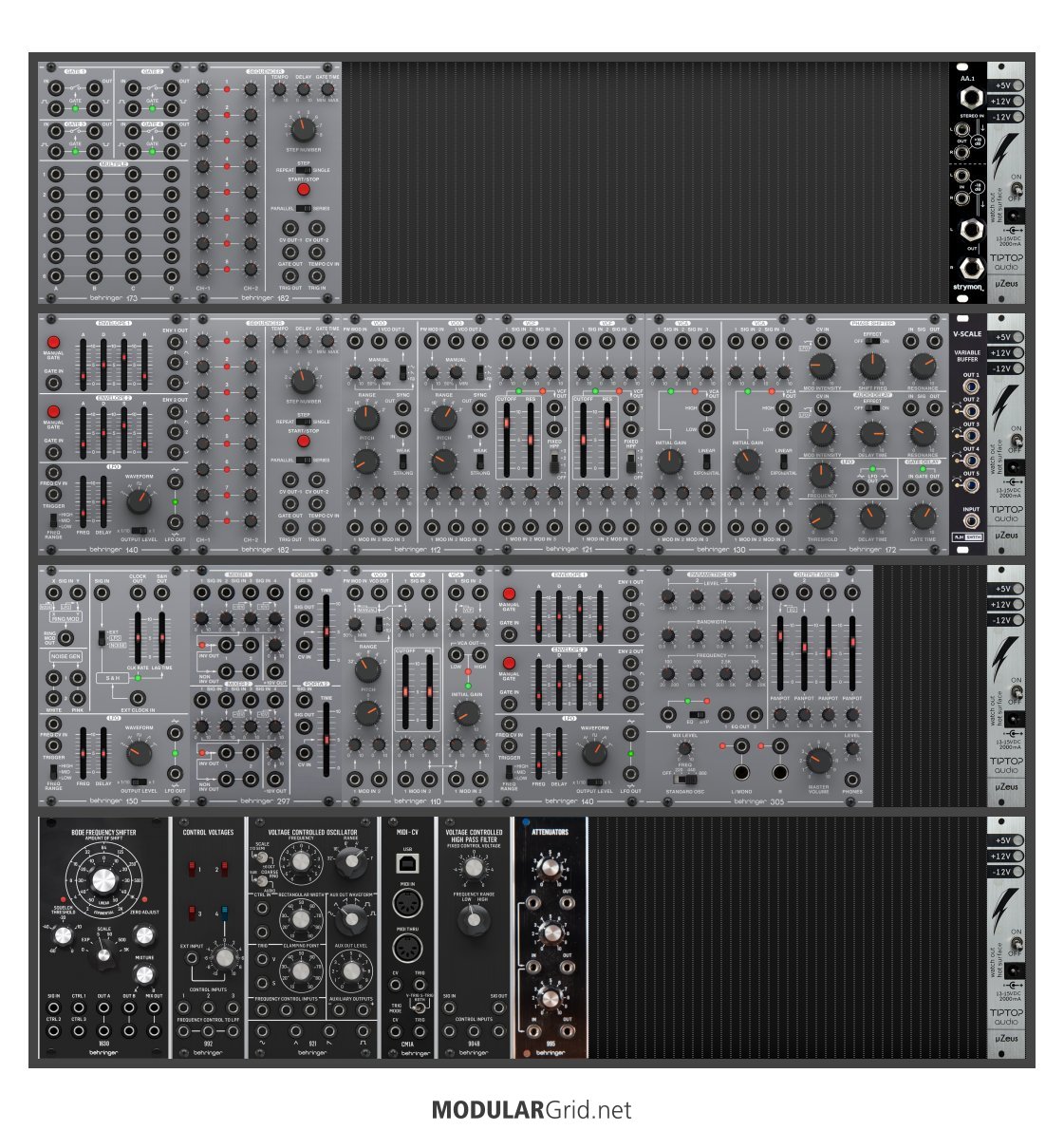 Power Consumption: 1050 mA +12V | 890 mA -12V | 0 mA 5V | Depth: 56 mm | Price: $1,526 | Number of Modules: 25 | Data Sheet Achtung This Rack contains modules with incomplete power consumption specs: none