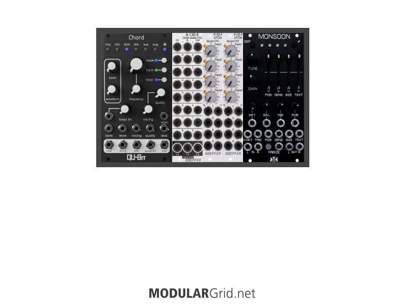 Power Consumption: 352 mA +12V | 145 mA -12V | 0 mA 5V | Depth: 40 mm | Price: $883 | Number of Modules: 5 | Data Sheet Achtung This Rack contains modules with incomplete power consumption specs: none