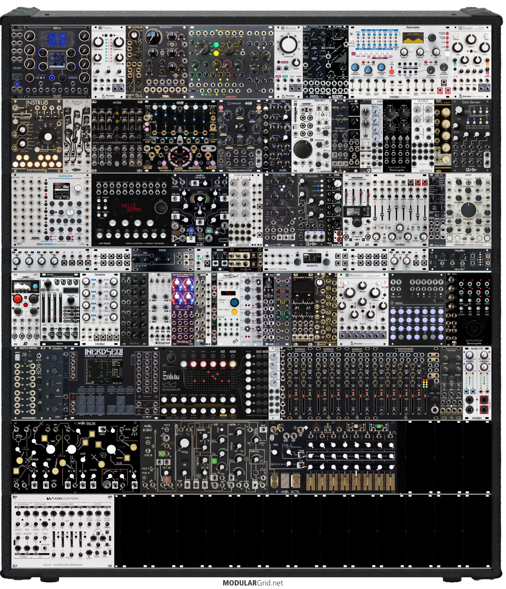 Power Consumption: 8668 mA +12V | 2961 mA -12V | 130 mA 5V | Depth: 46 mm | Price: $23,120 | Number of Modules: 107 | Data Sheet Achtung This Rack contains modules with incomplete power consumption specs: none