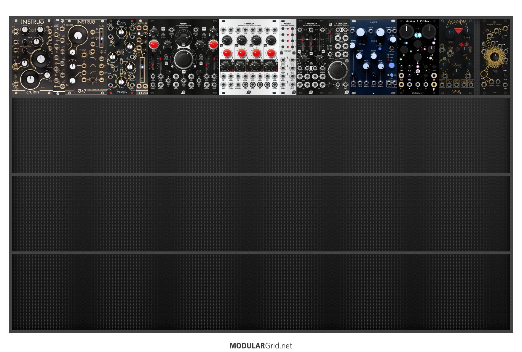 Power Consumption: 1105 mA +12V | 935 mA -12V | 0 mA 5V | Depth: 40 mm | Price: $2,667 | Number of Modules: 13 | Data Sheet Achtung This Rack contains modules with incomplete power consumption specs: none