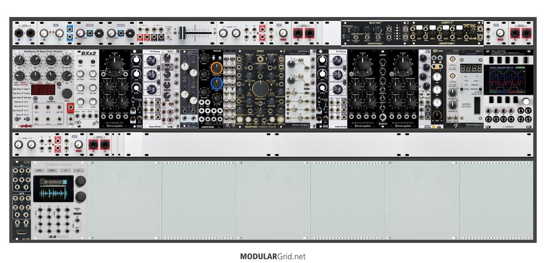 Power Consumption: 2042 mA +12V | 1078 mA -12V | 150 mA 5V | Depth: 53 mm | Price: $6,457 | Number of Modules: 52 | Data Sheet Achtung This Rack contains modules with incomplete power consumption specs: none