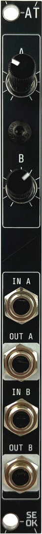 This is a dual channel attenuator with trimpots. Small footprint and simple – yet effective.