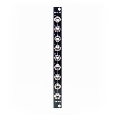 This passive module works as a 1 in 7 out multiple or as two smaller multiples. Any signal or voltage put into the top input will be split between the 7 outputs of the module. When a signal or voltage is added into the lower input, this creates two separate multiples - So the top input is then split between the top three outputs, and the lower input is split between the bottom 4 outputs.