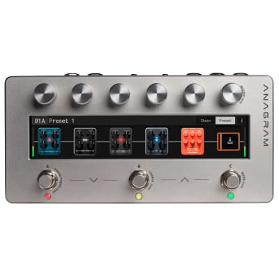 Anagram is a multi-effect processor and pedalboard platform designed for bass players who need flexibility, speed, and precision. It runs a modern DSP architecture with six cores, capable of handling complex effect chains and amp modeling with low latency.