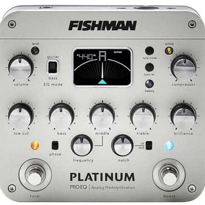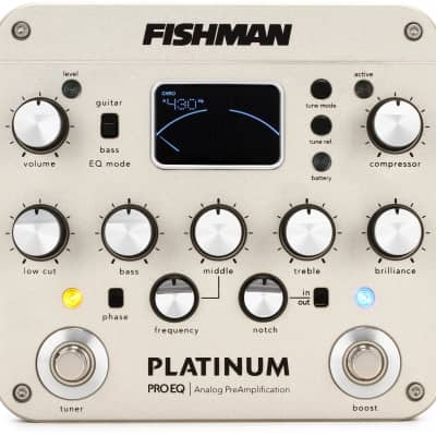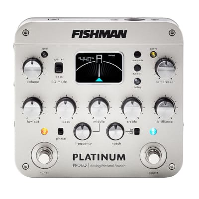 Completely redesigned from the ground up, the all-analog Platinum Pro EQ universal instrument preamp delivers incredibly accurate sonic detail for any acoustic instrument. A discrete, high-headroom Class-A preamp uses precision, high-speed circuitry for the highest fidelity and low distortion. Classic Fishman tone centers with sweepable mid is combined with a switchable guitar/bass EQ mode, making it more musical for bass instruments and more universal for recording and performing musicians.
