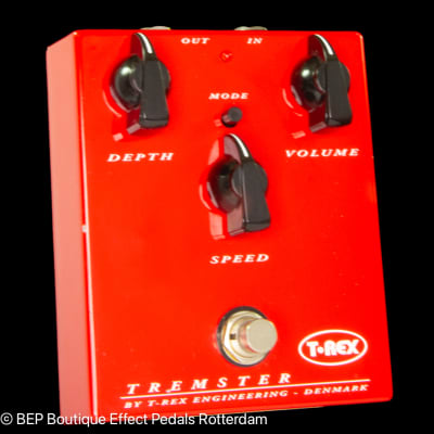 Tremster is a masterpiece of effective simplicity. Its only controls are Depth, Speed, Volume and Mode. The pedal is precision-engineered to sound great at any setting – so you can experiment all you like and never get a sound you wouldn’t want to use. Like all T-Rex pedals, Tremster boasts an elegant, rugged design that’s built for a life on the road. It comes in cherry red.