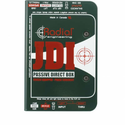 The Radial JDI is a passive direct box designed to handle extreme signal levels without distortion of any kind. At the heart, the Radial JDI employs the world class Jensen JT-DB-EPC audio transformer delivering a smooth, warm sounding Bessel curve, reminiscent of the finest vintage gear. Ruler flat from 10Hz to 40kHz and with virtually zero phase deviation, the JDI delivers the natural, pure sound of the instrument without artifact. By its no-power passive design, the Radial JDI performs both high-to-low impedance conversion and signal balancing over a magnetic bridge that passes signal while rejecting stray DC voltage. This makes the JDI particularly adept at eliminating hum and buzz caused by ground loops.