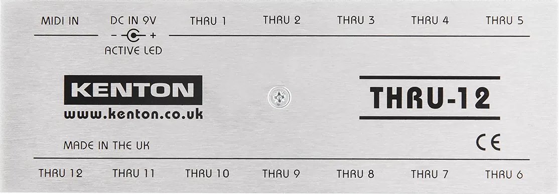 Receives MIDI data from a single MIDI OUT (such as a sequencer or master keyboard) and distributes identical copies to 12 MIDI THRU outputs.