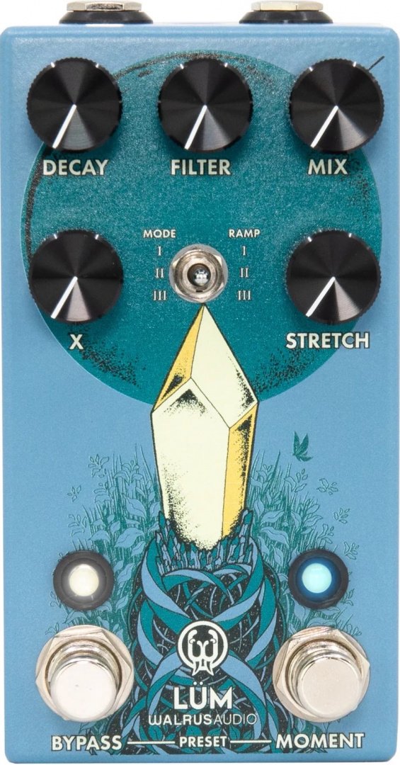 Mode II - Grain Verb: A grain verb with dual granular taps reading from the delay memory of a reverb algorithm tank, which sounds like the grains took a bath in reverb. X knob controls the grain size, or how frequently you’ll hear the “glitches” happen. Tip - Lüm is a treat to put before high-gain pedals in mode two.