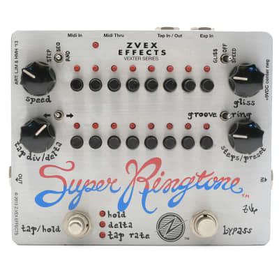 The Super Ringtone is a greatly expanded 16 step version of our original Ringtone sequencer pedal. Features include MIDI sync, tap tempo control, tap tempo sync, expression pedal control of speed or glissando, individual step glissando, 8 user programmable memory locations, and delta speed control.